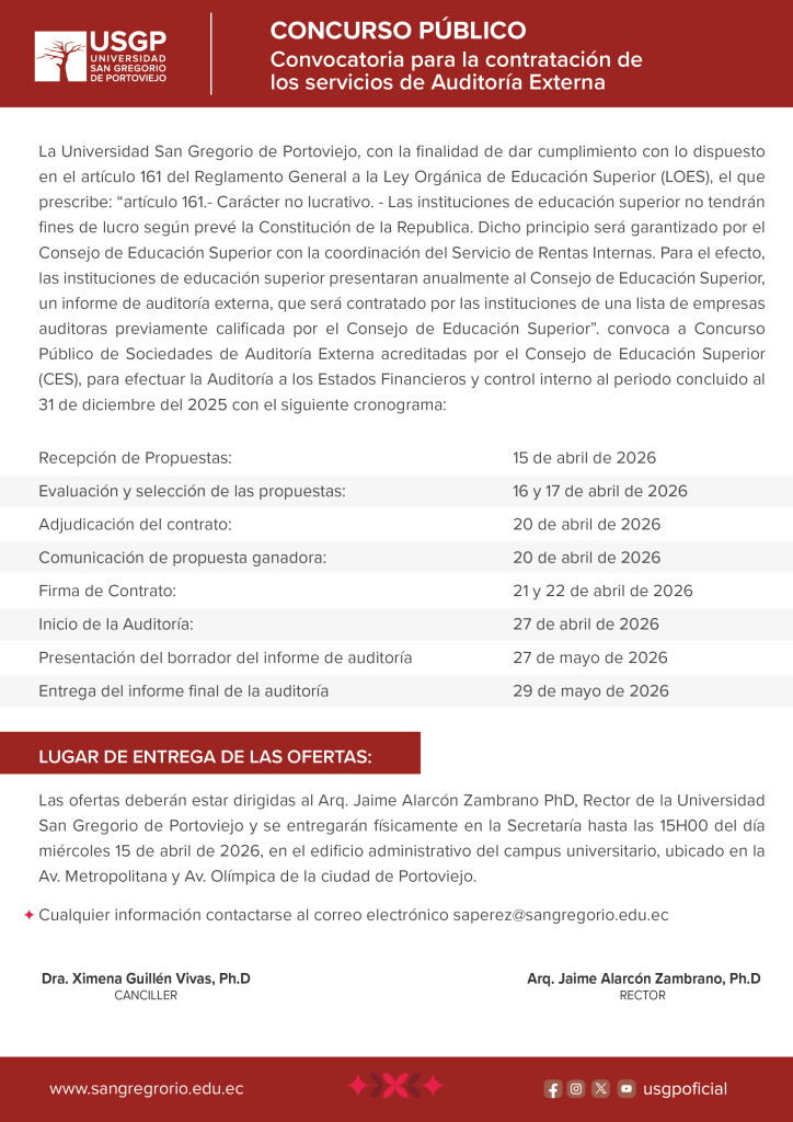 Convocatoria para la contrataci贸n de los servicios de Auditor铆a Externa