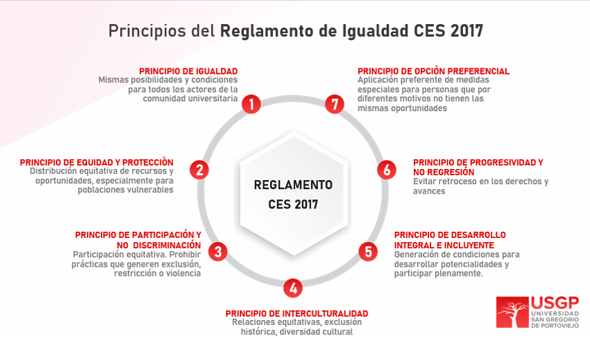 Que, el Art. 4 del Reglamento para Garantizar la Igualdad de todos los actores en la Educación superior, dice: “Principio de Igualdad. Consiste en garantizar las mismas posibilidades y condiciones a todos los actores del Sistema de Educación Superior para promover la igualdad de trato y el ejercicio de los derechos y libertades fundamentales. La igualdad plantea la adopción de medidas afirmativas tendientes a superar formas sociales, económicas, culturales y políticas excluyentes y discriminatorias, e involucra la apertura de oportunidades en respuesta a condiciones de desigualdad y asimetría estructuralmente generadas”.