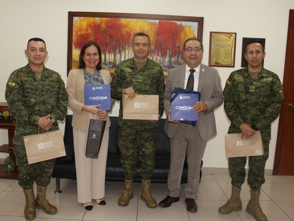 Durante la reunión, se destacó y agradeció el respaldo de la USGP a los oficiales, tropa profesional y conscriptos de la unidad militar, reafirmando el compromiso institucional con el bienestar y el desarrollo de la comunidad. Este tipo de acercamientos fortalecen los lazos de cooperación interinstitucional y abren nuevas oportunidades para el crecimiento académico y profesional.